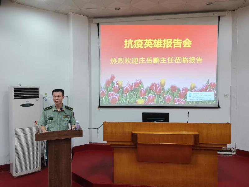 会议第一议程由检验科副主任庄岳鹏教授作奔赴武汉抗疫事迹报告。会上,庄岳鹏教授与大家分享了他在武汉抗疫的日日夜夜、点点滴滴,介绍了自己的所见所闻、所思所想。当得知医院要抽调人员前往武汉执行抗疫任务,庄岳鹏教授主动请缨,克服家中两位老人重病的重重困难,毅然前往湖北省妇幼保健院光谷院区,主要参与负责检验科和核酸检测实验室的建设完善及核酸检验等工作。在那里虽然没有直接面对患者,但面对的是传染性极强的痰液、鼻咽拭子等核酸标本,随时都有被感染的可能。然而作为科室年龄最大、资历最老的庄教授身先士卒,昼夜连续奋战在核酸检测的第一线。他的躬身垂范精神让年轻的同志克服了恐惧心理,积极投入到工作中。“功成不必在我,功成必定有我”。庄教授表示,在国家遇到危难之时可以尽到作为医者救死扶伤的职责,是一生中的幸事,此生无悔入华夏,来世还做中国人。最后,庄教授寄语在场的每一位同学都能成为一个热爱党热爱祖国的青年,一名专业过硬的医学生,一位勇于奉献、勇于担当的白衣战士。庄教授感人肺腑的言语赢得了同学们的阵阵掌声。这是一次最美逆行的精神传承教育。