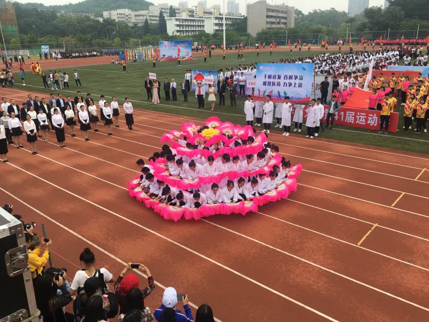 开幕式上,身着白大褂,朝气蓬勃的beat365 手机版官方网站学子们手持红扇,组成“鲜花”的队列形式,展现了其坚守医者仁心、守护生命之花的信念。 “千帆竞发,百舸争流!唯我医药,力争上游”的口号喊出了同学们敢于拼搏、勇往直前的决心,喊出了不畏艰难、力争上游的信心。