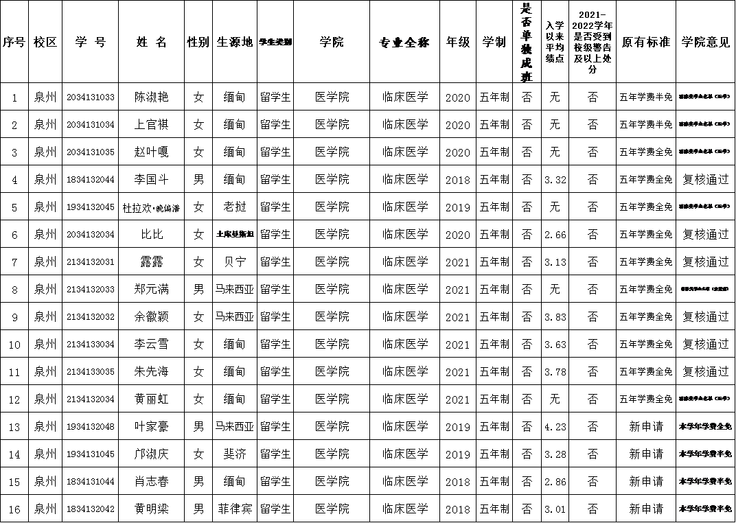 根据学校文件精神,经学生个人申请,学院学生工作委员会逐级评审,现将2022-2023学年境外学生专项奖助学金复核结果公示如下:
