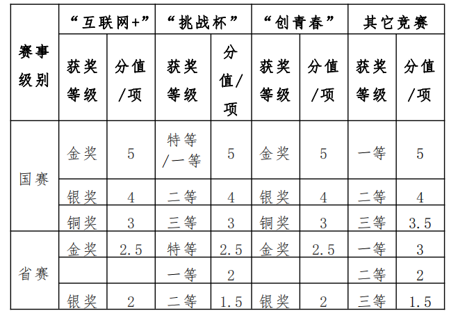 (2)成果等级以学校职能部门文件规定的为准。新增竞赛活动由学校推免工作领导小组认定。