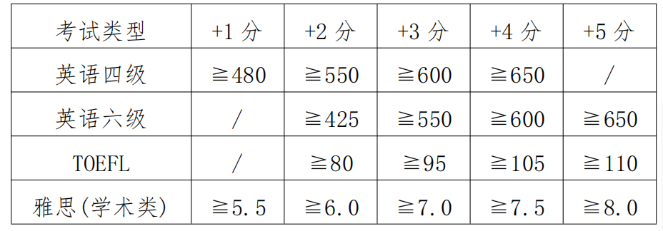 2.第一外语为非英语的,参考英语四级考试成绩加分标准。
