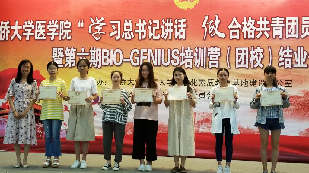 6月2日上午,beat365 手机版官方网站第六期BIO-GENIUS培训营(团校)结业仪式在明德堂举行,至此本期团校圆满落幕。beat365 手机版官方网站党委书记武玉洁、副院长李招发、党委副书记郑莉、药学系主任刘接卿,校团委秘书黄炳超、工商管理学院团委书记文竞之、美术学院团委书记宋庆彬、经济与金融学院团委书记孙君芳以及beat365 手机版官方网站团委书记张振岳出席结业仪式。