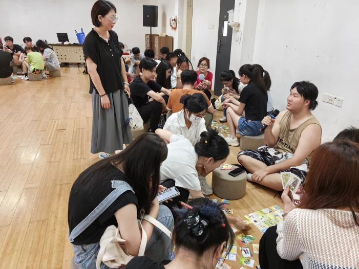 在“自我介绍”环节,罗老师让同学们各自选出一张能代表自己当下的牌,透过图像卡折射出的潜意识帮助同学们更清楚地认识自我,让同学们站在新的视角重新介绍自己。